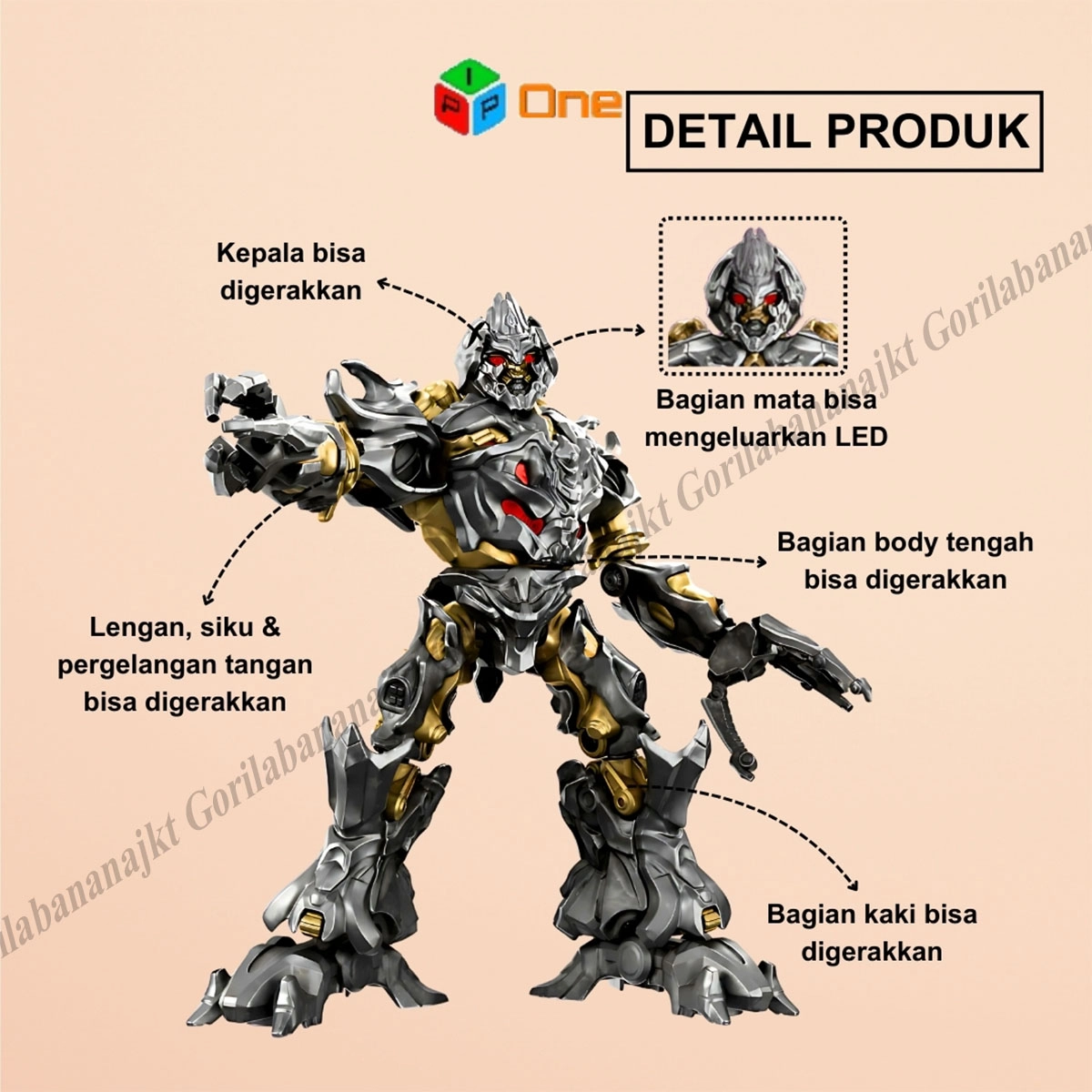 13 centimeters in height, fully posable body, glowing eyes & chest