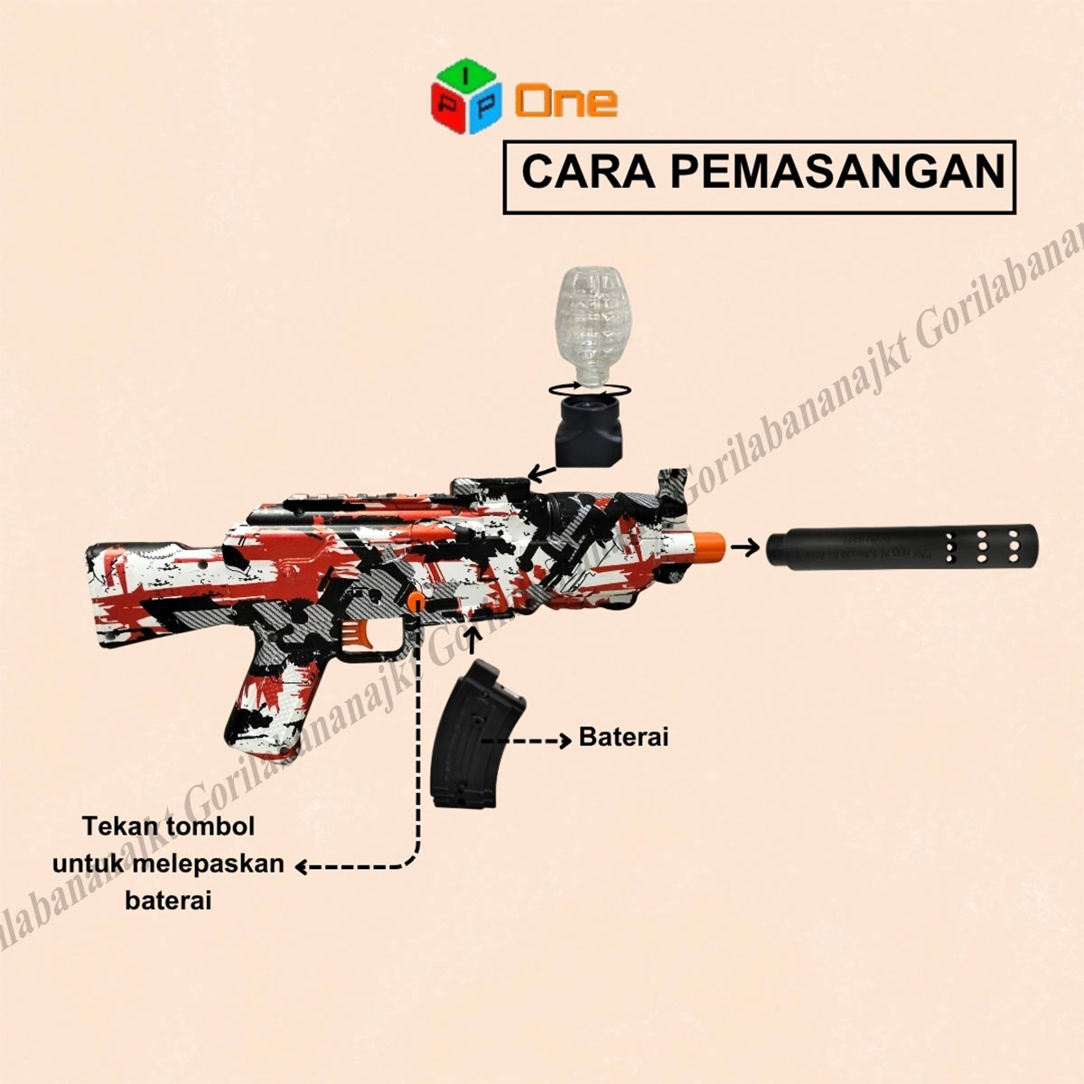 Mode Auto = menembak secara beruntun peluru watergel