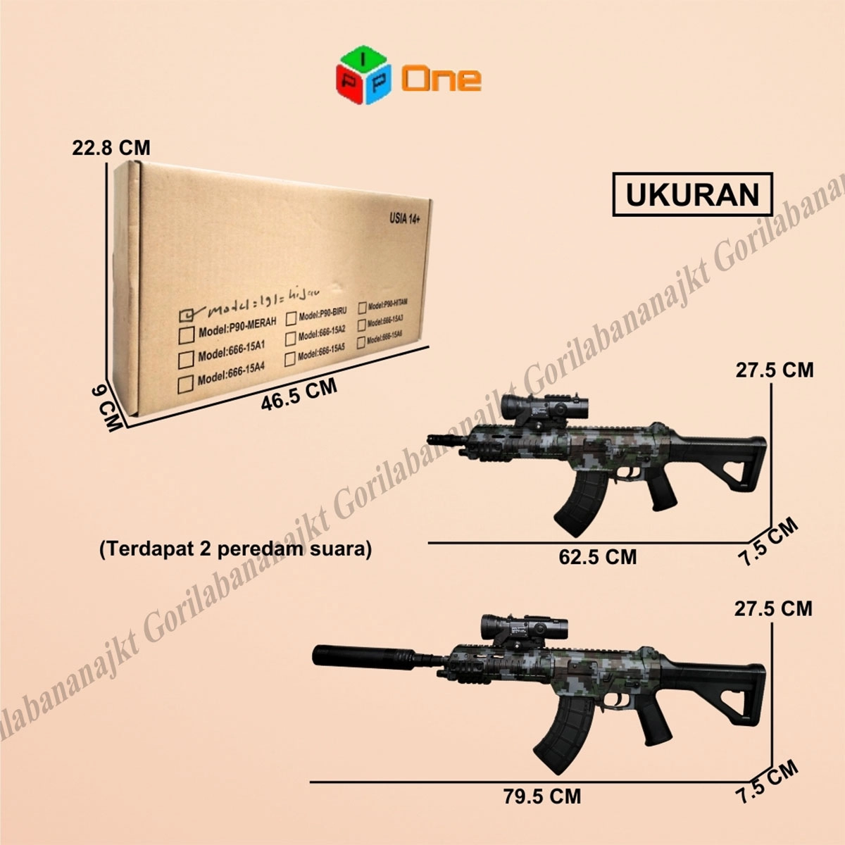 Panjang unit dengan peredam Kecil terpasang mencapai 62cm
