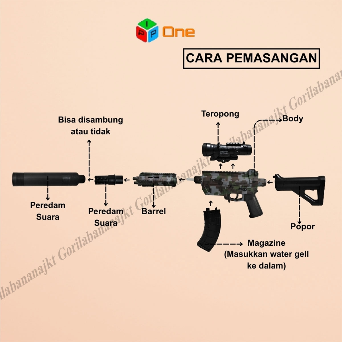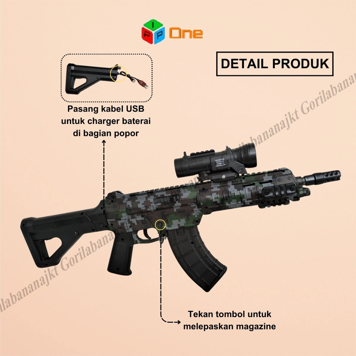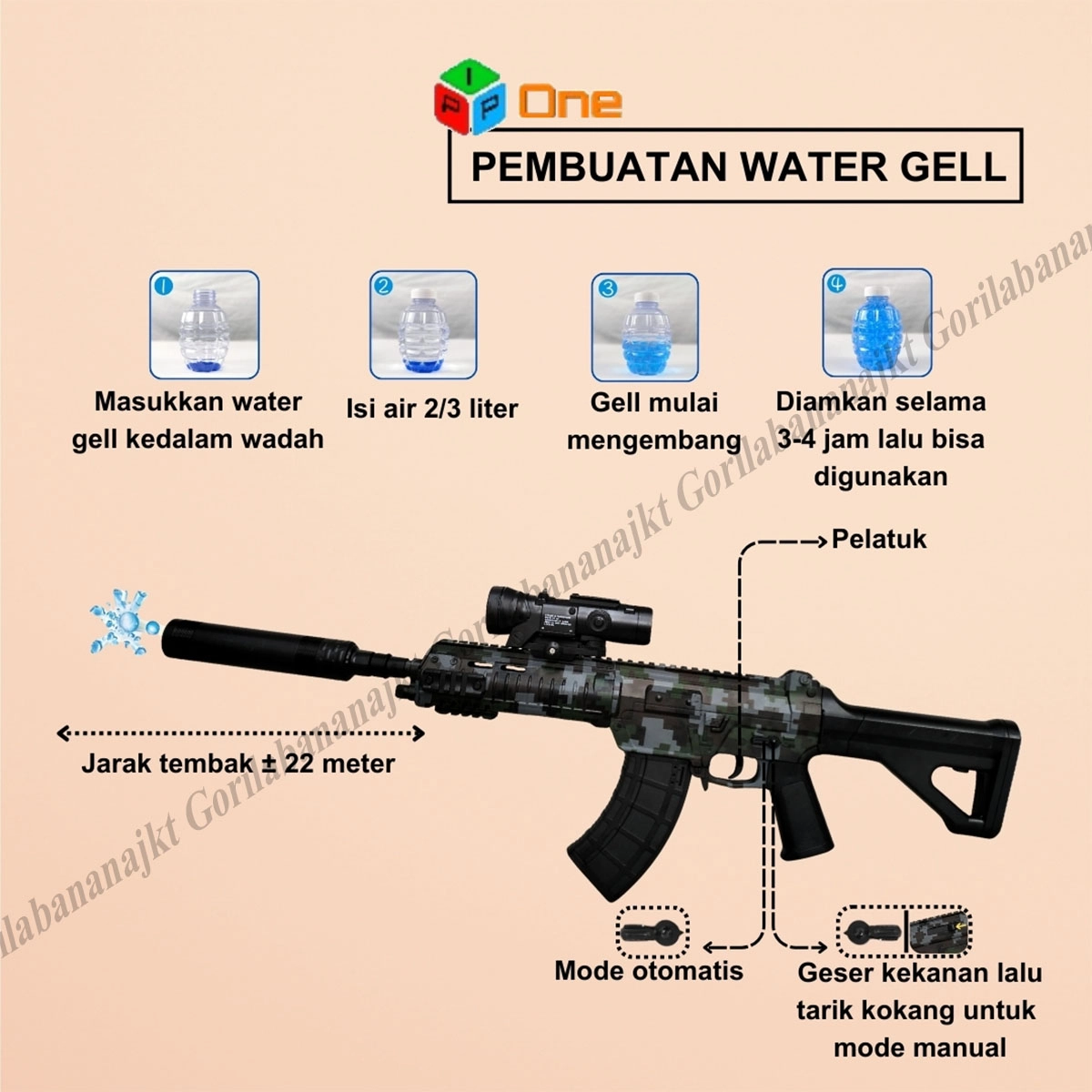Mode Auto = menembak secara beruntun peluru watergel